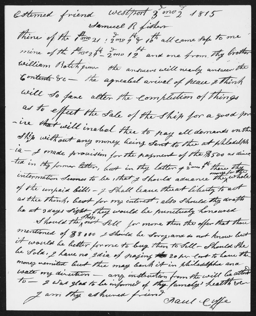 Published April 22, 2025 at 2074 × 2560 in 1064. 1815 Letter to Samuel R. Fisher.