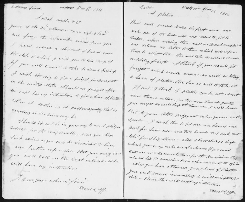 122. 1816 Letters to Josiah Bradlee & Co. and Capt. A. Phelps